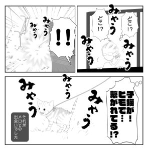 紐で繋がれた子猫…