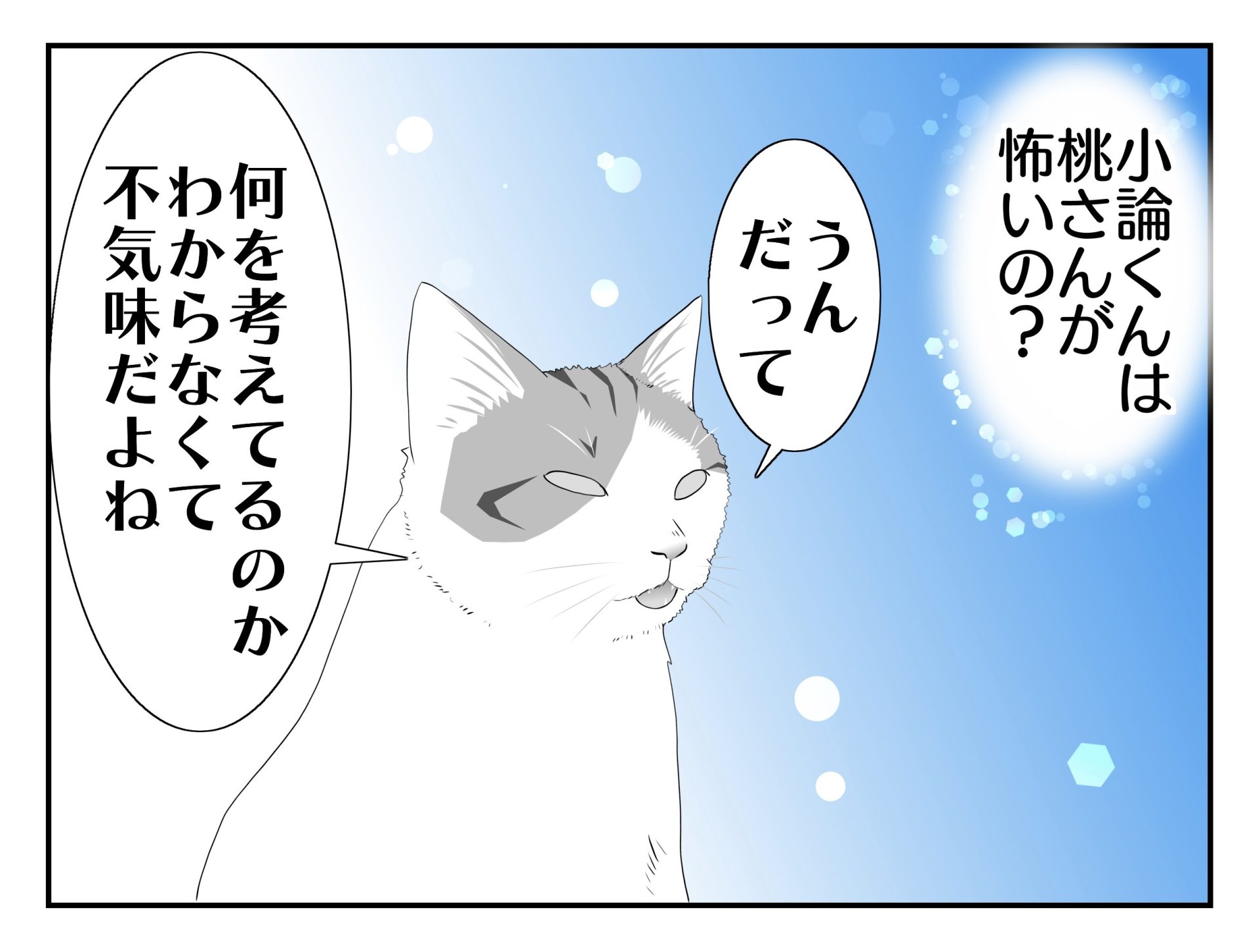 スポンサーリンク おすすめ記事思い出の老猫日誌〜桃姐と小論〜第1章 桃姐のこと1...思い出の老猫日誌〜桃姐と小論〜第1章 桃姐のこと1...思い出の老猫日誌〜桃姐と小論〜第1章 桃姐のこと1...思い出の老猫日誌〜桃姐と小論〜第1章 桃姐のこと1...思い出の老猫日誌〜桃姐と小論〜第1章 桃姐のこと1... 猫漫画〜うちの猫がいうことには〜白キジの小論編3 アニマルコミュニケーション2023.06.08スポンサーリンク 前回白キジの小論編3広告 あとかきこれを聞いた時「いけね!」と思いました… みんな同じように接しているつもりでしたが小論はこう感じていたのだなぁと猛反省いたしました。 白キジの小論編4へ続きます 5