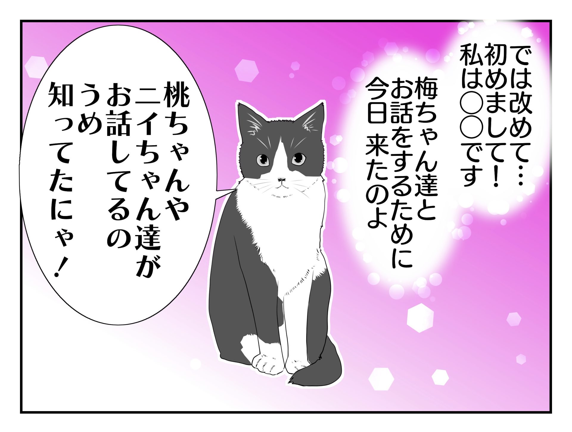 スポンサーリンク おすすめ記事思い出の老猫日誌〜桃姐と小論〜第1章 桃姐のこと1...思い出の老猫日誌〜桃姐と小論〜第1章 桃姐のこと1...思い出の老猫日誌〜桃姐と小論〜第1章 桃姐のこと1...思い出の老猫日誌〜桃姐と小論〜第1章 桃姐のこと1...思い出の老猫日誌〜桃姐と小論〜第1章 桃姐のこと1... 猫漫画〜うちの猫がいうことには〜白黒ハチワレの梅編2 アニマルコミュニケーション2023.07.02スポンサーリンク 前回↑画像クリックで前話へ白黒ハチワレの梅編2広告 我が家のカワイイ担当 あとがきなんと梅も過去を話はじめたそうです。質問の仕方がよかったのかも 白黒ハチワレの梅編3へ続きます 毎日 昼頃 更新中 4
