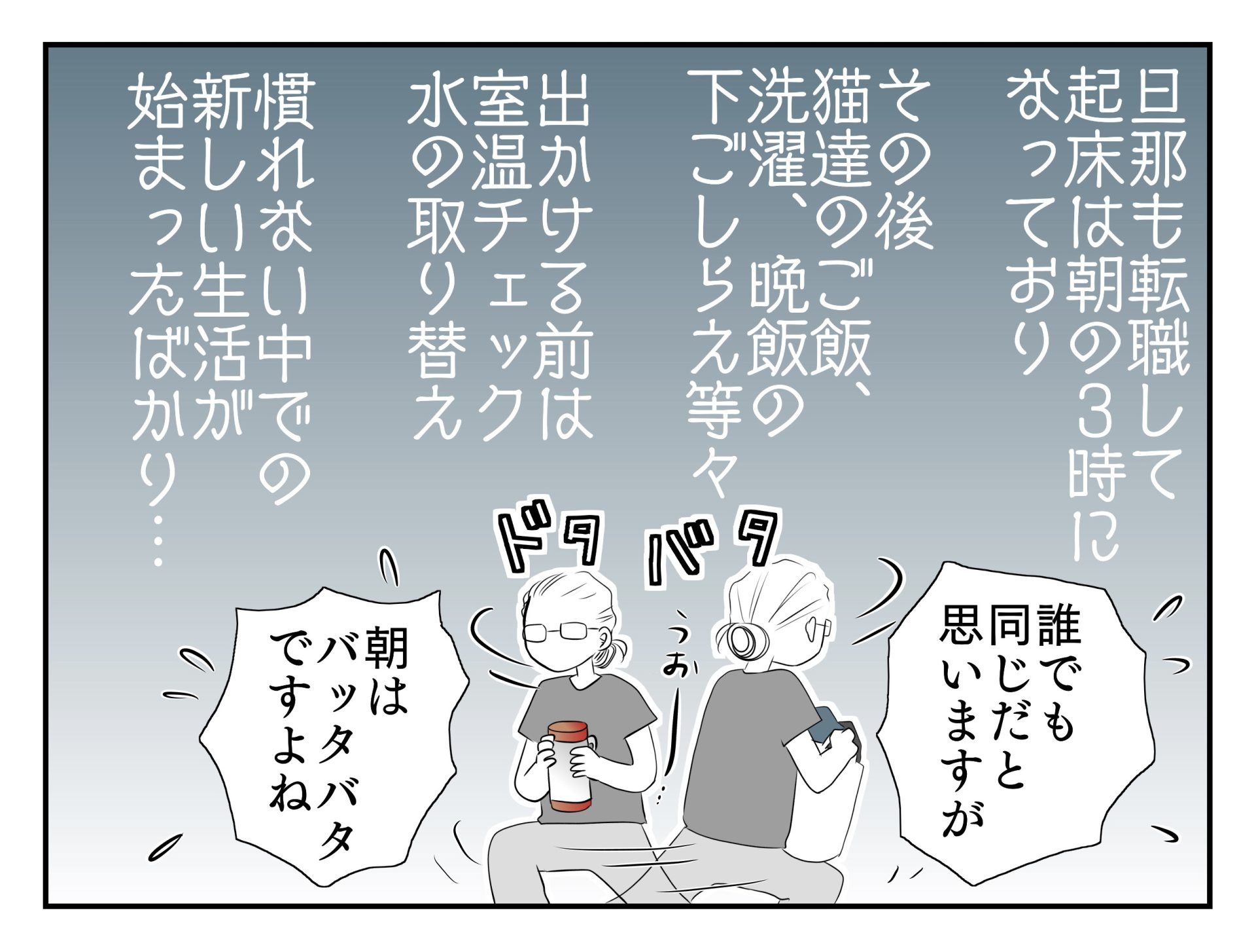 旦那もその前の年あたりに転職をしていて起きる時間が朝の3時になったり