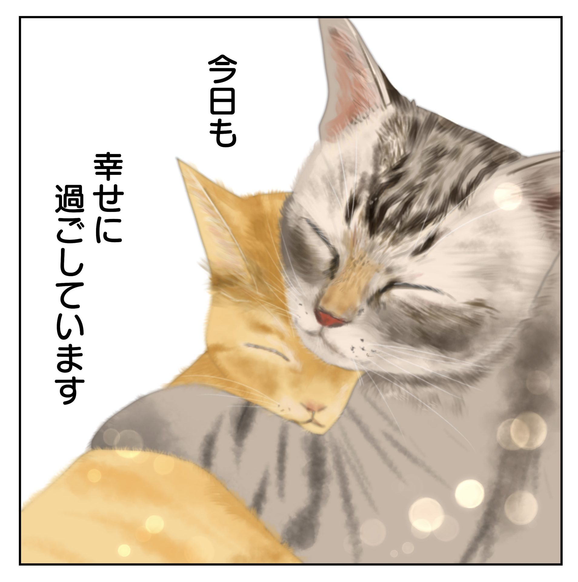 最近〜なかなか読めてなくてインスタでいいねだけ押して(すみません💦)ブログでちゃんと順番どーり読みたいと思って〜やっと今日最終話まで読ましてもらいました🙏メロちゃんは私が保護して3匹目の子にそっくりなので感情移入してしまってとても良い方に巡り会って幸せになって良かったです🥰こけさんもAさんもとても優しくて穏やかな方達で私とは全然違うので反省ばかりですう😅先住の双子の猫達は人に保護されて兄弟で育ってた猫達を迎えたので野生の猫を保護したのは初めてで戸惑うばかり💦で保護した事を後悔ばかりしてた時にまた同じ歳ぐらいの黒猫ちゃんを飼うつもりがなく保護したことで色んなことが変わって今は全員と仲良く穏やかに暮らせてます😂こけさんの漫画読んで保護することの大事さとか難しさを改めて感じました。長くなってすみません😅これからも応援してるので可愛い絵と素敵なお話し楽しみにしています🥰